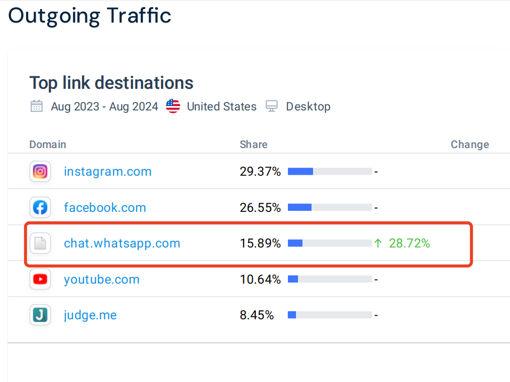 据Similar Web可知,上个月卡罗特WhatsApp的渠道流量上涨29%,且在官网也有引导用户链接到WhatsApp的路径。一旦有用户进入WhatsApp,卡罗特的客服人员可以直接服务或在线营销,最大程度把握客户决策黄金周期,缩短成单时间,降低获客成本。