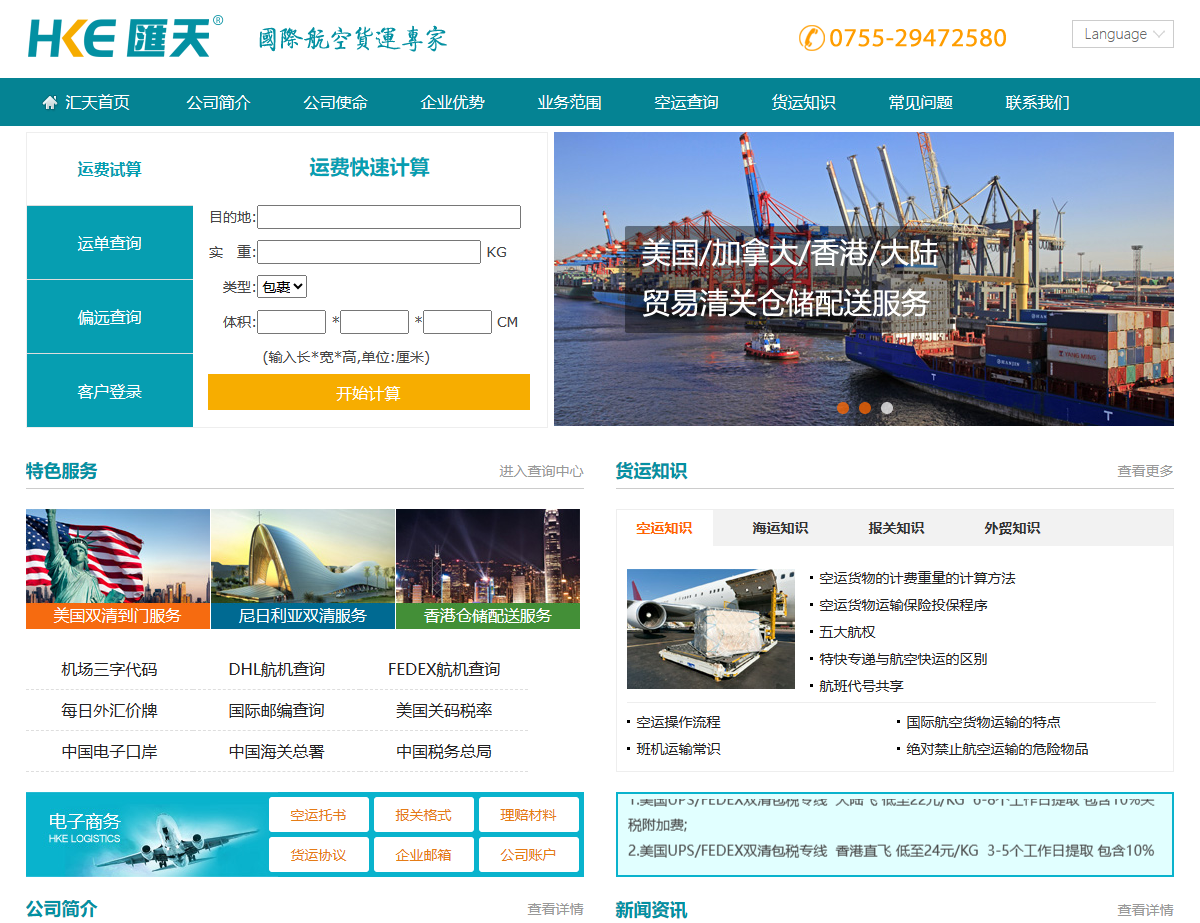 汇天物流一直致力于国际货运代理,电子商务,进出口贸易,供应链物流管理。并提供香港,中国,欧美地区本地清关,仓储配送,报关报检综合物流服务商。