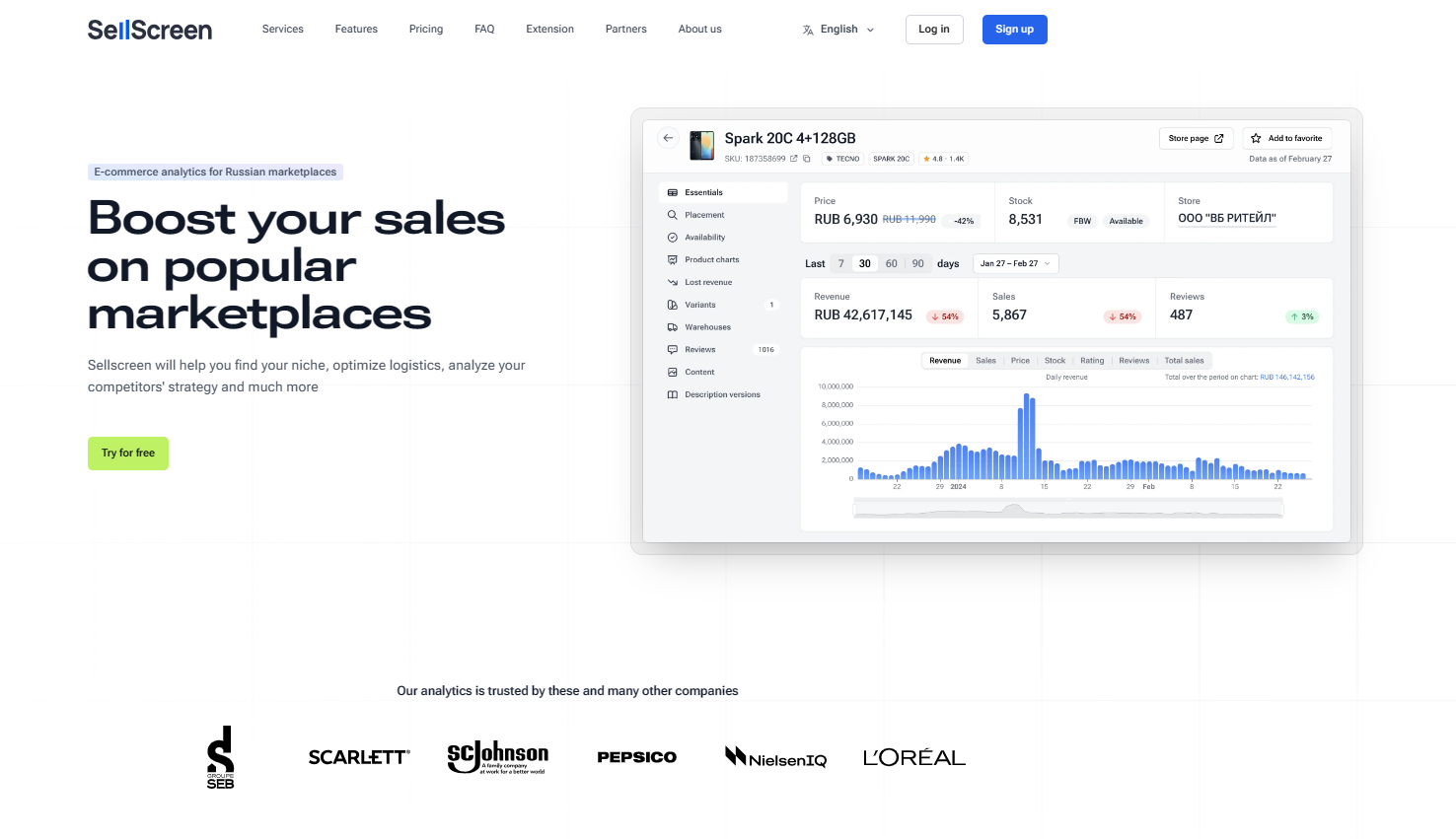 2020,通过Sellematics服务进入独联体市场,为主要品牌提供分析。