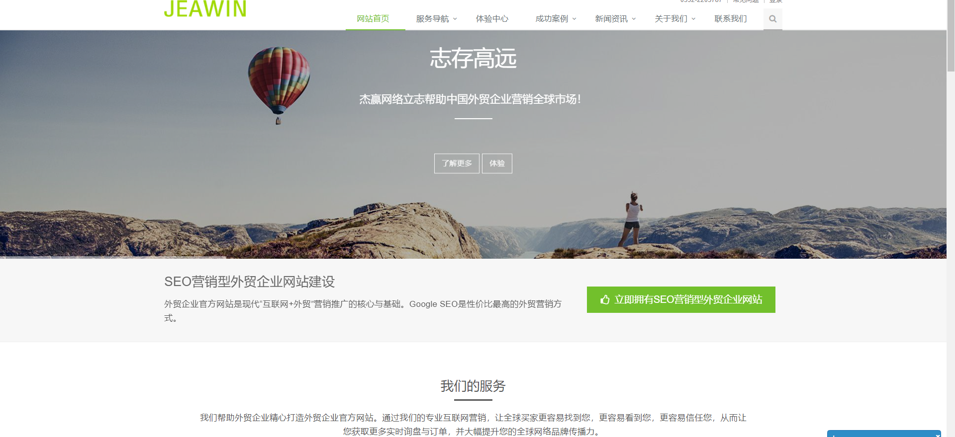 厦门杰赢网络科技有限公司自成立至今,一直致力于为中国优秀外贸企业提供优质高端外贸网站建设、外贸网站优化、外贸网站推广、外贸网站维护,外贸SEO、外贸SEM、外贸SNS等外贸网络营销一条龙服务。我们拥有一支高效率的精英团队,设计过形形色色的外贸网站项目,累积了丰富的建站技术与运营经验,凭借精益求精的工作态度和互利共赢的工作理念,正在以良好的势头迅猛发展。 作为国内优秀外贸网络营销整体解决方案供应商,我们承诺优质高效的服务。例如我们的外贸建站服务除了提供一流SEO营销型网站技术开发之外,还全程提供外贸企业网站SEO技术指导与后台操作培训;提供友情链接交换支持;服务期内提供免费网站维护技术支持;提供优秀同行链接建设与广告链接信息数据等增值服务。