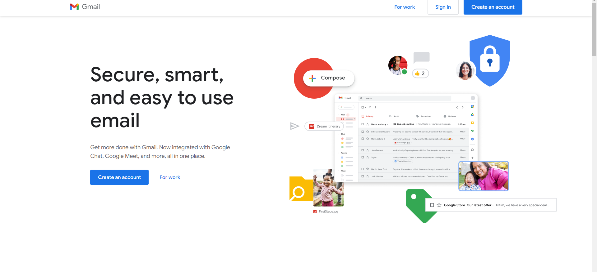 Gmail 是 Google 的免费网络邮件服务。它随付内置的 Google 搜索技术并提供15G以上的存储空间。可以永久保留重要的邮件、文件和图片,使用搜索快速、轻松地查找任何需要的内容,让这种作为对话的一部分查看邮件的全新方式更加顺理成章。