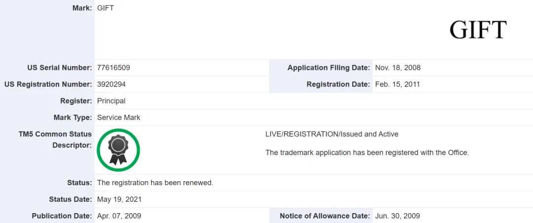 丨GIFT该词已被注册为商标