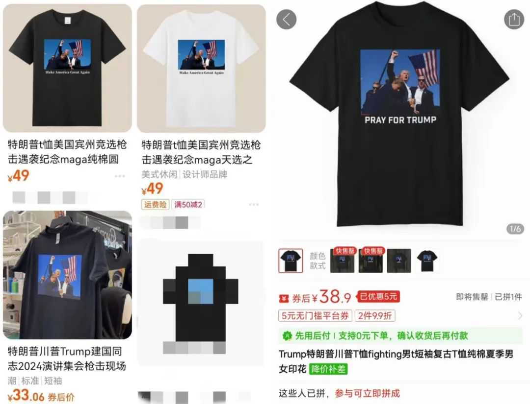 昨日,#特朗普遭遇枪击# 的消息刷屏了各大媒体平台。据央视新闻报道,美国当地时间7月13日下午,特朗普在宾夕法尼亚州发表竞选演讲时,遭到了枪击。一石激起千层浪。7月14日,#特朗普称右耳被子弹击穿#、#枪击特朗普枪手身份确认#、#特朗普 人生照片#等相关话题便迅速登上了热搜。而值得一提的是,在网友们纷纷热切关注该重大事件的后续进展之余,已有敏锐的电商卖家嗅到了其中的商机。AMZ123获悉,在特朗普遭遇枪击后不久,就有网友发现:国内多个电商平台的店铺已上架并正在出售特朗普遇袭的相关周边。据爆料,这些店铺通常以特朗普遭遇枪击时高举拳头的现场画面(网友们将其戏称为"特朗普的人生照片")作为柄图,制作成T恤在电商平台上售卖。其中部分产品甚至已有销售收入。 与此同时,还有卖家爆料称,TikTok上已有多个主播就此周边产品开启直播销售,其中一名主播的T恤销量不仅短时间内便已破百,在涨价10刀后又售出了上千件。 ▲图片来源于卖家爆料因此该消息一经曝光,就在跨境圈内引起了热议:"我们还在看热闹,老美已经开直播卖周边了。""太快了吧,有点怀疑这些产品又是made in 义乌。""亚马逊会员日爆款预定:特朗普遇刺周边T恤!"而在好奇这些周边的受众之余,更多卖家则表达了对于特朗普周边产品的另一个疑问:未经允许的情况下,使用特朗普的形象做周边产品难道不会侵权吗?答案是肯定的:有侵权风险。首先,根据美国《反不正当竞争法(第三次)》第46条规定:“未经同意,基于商业的目的使用他人姓名、肖像或者其他身份标识,即构成对他人形象权的侵犯,应承担损害赔偿责任。”其次,被印在T恤上的“特朗普人生照片”出自美国某记者之手,受版权保护。在未获得许可或授权的情况下将该照片用于商业销售,也有可能构成对他人作品版权的侵犯。▲特朗普“人生照片”,图源社媒目前,国内部分电商平台上,印有特朗普遇刺场面的T恤已遭到了下架,搜索相关关键词已找不到相关周边产品。不过与此同时,海外(尤其是美国)关于这类周边产品的直播销售仍在进行,并且相关产品的热度也在进一步攀升。目前,亚马逊也有部分相关周边产品已上架。▲图片来源于亚马逊而事实上,早在枪击案发生之前,由于正值美国大选期间,带有特朗普形象的相关周边产品就已在亚马逊等跨境电商平台上热销,品类包括T恤、杯子、帽子、贴纸等,月销量达到上千的不在少数。▲图片来源于亚马逊美国站而在枪击事件发生后,相关关键词的搜索量大幅上涨,这些周边产品的热度或将再度提升。甚至有卖家调侃这些产品或将成为即将到来的会员日的爆款。面对这一商机,想必已有诸多卖家蠢蠢欲动想要入场。但也有卖家指出,这类周边产品不仅有侵权风险,并且也只能算是短期爆品,在多个卖家入局的前提下,竞争已十分激烈。如今亚马逊等电商平台均趋于合规化,若想长期布局,入场这类具备侵权风险的短期爆品还需谨慎考虑。除此之外,受遇刺事件影响,特朗普在美国大选的胜选概率进一步增加。一项关于“2024美国大选”预测显示,截至7月14日早,特朗普的胜率为71%,而拜登仅为16%。面对这一趋势,也有不少卖家关注另一重要议题:若特朗普胜选,将会对跨境电商产生什幺样的影响?正所谓:在商言商。纵观中美关系发展史,美国总统的对华态度,几乎都表征着中美贸易的晴雨表。由于近期特朗普的胜选概率进一步攀升,在此仅简单分析“川普”当选后可能对跨境电商产生的影响:1、关税特朗普若胜选,或将再次针对中国产品加征关税,进一步拉高跨境卖家的出口成本。据外媒报道,今年2月,特朗普曾透露其胜选后可能会对中国商品征收超过60%的关税,同时在6月27日的竞选辩论中,特朗普再次重申了加征关税的外贸政策:将对美国进口的所有商品征收10%关税。一旦落实,或将对跨境卖家的利润空间造成严重的冲击。2、汇率特朗普若胜选,或将进一步促使美元贬值。据美媒透露,特朗普团队正在探讨促使美元贬值的策略,以促进美国商品出口,缓解贸易逆差问题。4月下旬,特朗普也在其社交平台上强调,若美元持续走高,对于海外市场而言,美国产品价格过高,美国制造业将失去竞争力。潜台词就是:其希望美元贬值为出口创造有利条件。而对于跨境卖家来说,美元贬值或将导致大量的换汇亏损,再度压缩利润空间。3、关于TikTok不同于连连催促“TikTok禁令”实施的拜登,特朗普对于TikTok的态度更倾向于支持。据悉,特朗普已于6月1日入驻TikTok。截至7月15日上午,该账号粉丝量已经达到了800万。除此前曾发表“年轻人离不开TikTok”的言论外,6月15日据外媒报道,特朗普还表示其“绝对不会”禁止社交平台应用程序TikTok。对此,也有卖家质疑特朗普是为了迎合年轻选民而做出的表态。但如果特朗普支持TikTok的态度属实且坚决,对于TikTok内容电商卖家而言,无疑是一个利好消息。不过同时也有专业人士指出,遇袭事件对大选胜率的影响是短期的。就目前来说,美国大选结果依旧扑朔迷离,走向难以预测。胜选的究竟是哪位候选人,上任后又会对中美贸易、跨境电商产生何种影响,目前还是个未知数。不知各位对此有何看法?欢迎在评论区交流讨论~