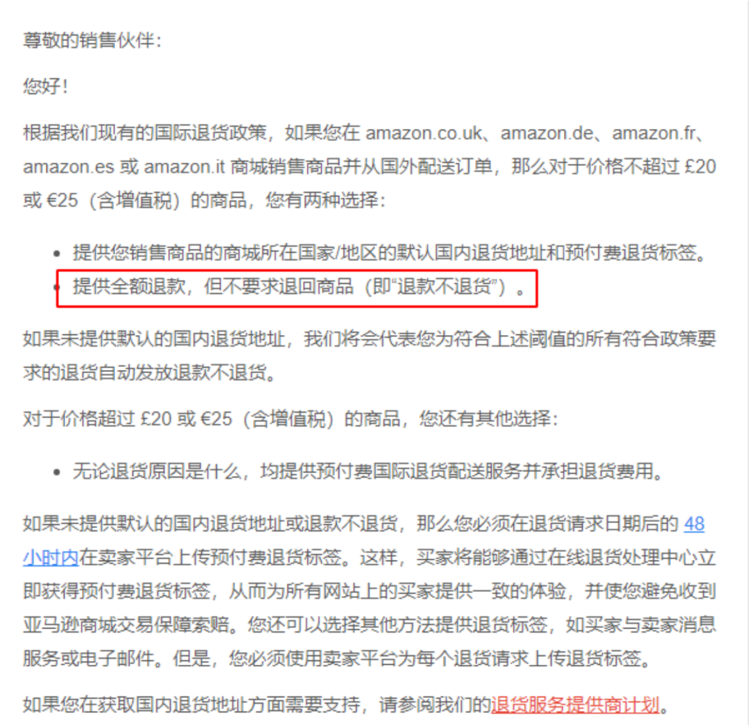 然而,早在2017年,亚马逊就已经在售后政策中加入了退款不退货的服务🛠️。对于不超过20英镑或25欧元的商品,亚马逊提供全额退款,并且不要求退回商品📦。