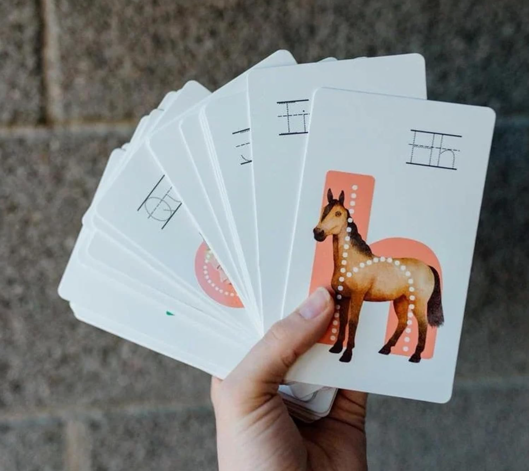 Lit Letters 嵌入式象形文字助记词的与众不同之处在于他们基于研究验证技术的独特方法。这些卡片融合了记忆友好、有趣的视觉效果和引人入胜的嵌入式象形文字助记符。每张图片都匹配其各自字母的最常见发音,并按照字母本身的形状进行设计。